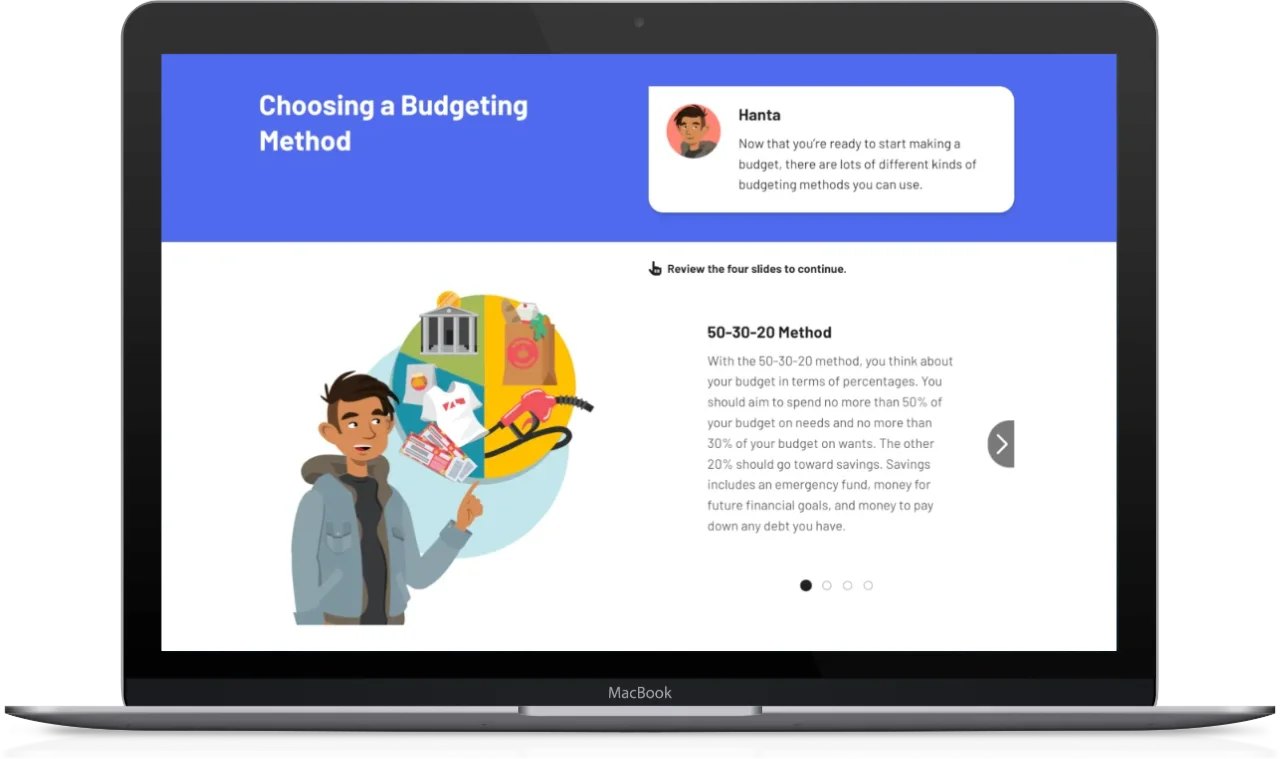 Nuestra plataforma digital es un hub para profesores buscando enseñar educación financiera, temas STEM, aprendizaje socioemocional, y preparación para la carrera.