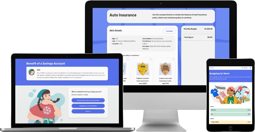 Everfi Financial Literacy es un programa digital que ayudará a los estudiantes a tomar decisiones financieras sabias y responsables y alcanzar éxito financiero en sus futuros. Todos los recursos interactivos en línea están disponibles para las escuelas de forma gratuita.